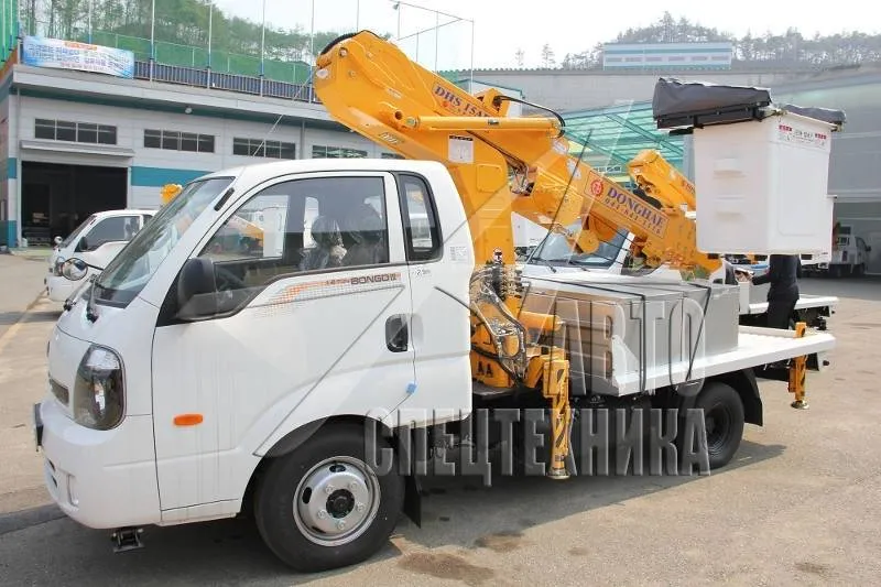 Автовышка Donghae DHS15AP корейского производителя Donghae Machinery подходит для работ в сферах городского и коммунального хозяйства в Томске: выполнение электромонтажных работ, монтаж рекламных щитов и конструкций, ремонт кабельных линий. Также может использоваться в строительных работах. Она состоит из бортовой платформы и крановой установки с рабочей высотой стрелы 14,5 м.